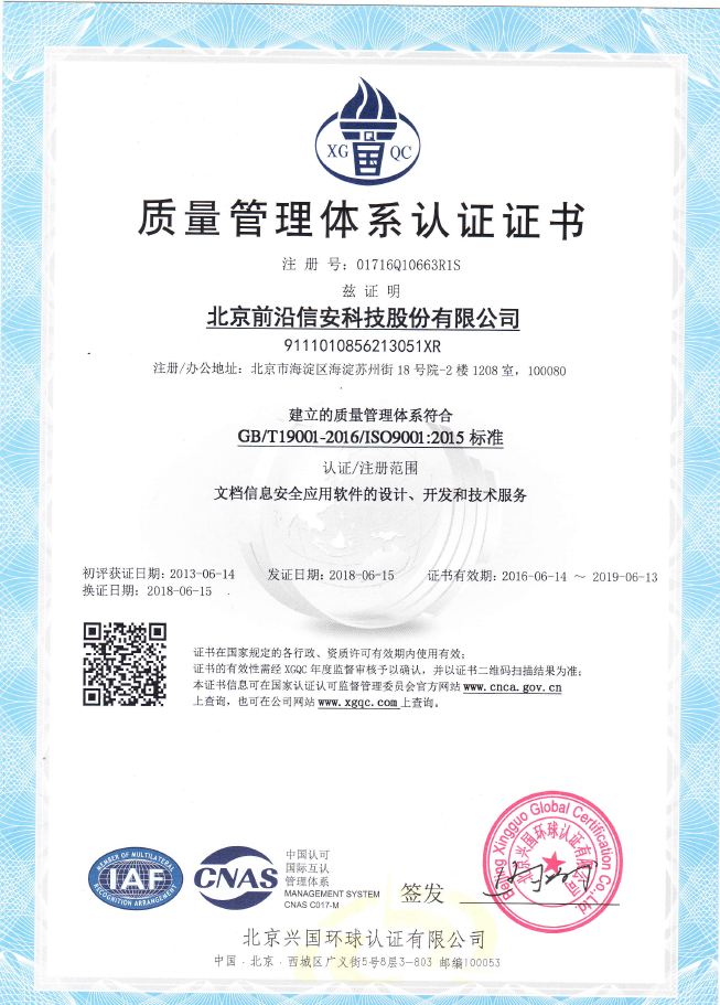 软件著作权证书--前沿风信电子文档管控系统V2.0